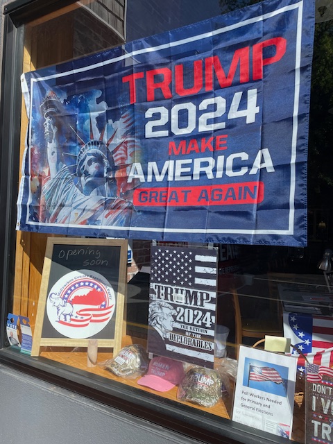 We met other folks with whom we were more careful, like the proprietor of a cramped antique shop who piped up when I saw a campaign sign from 1980 in which Ronald Reagan commanded that we “make America great again.”