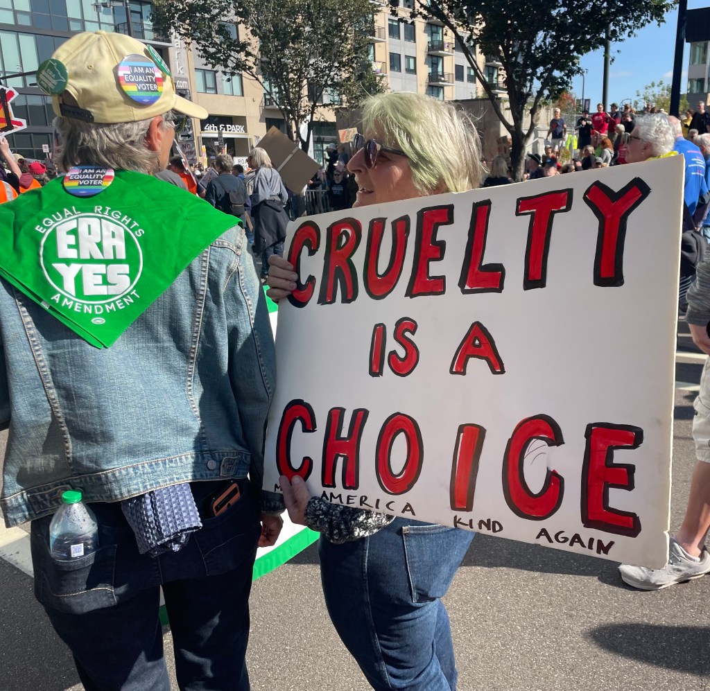 “Speak your mind, even if your voice shakes,” goes a famous quote by Gray Panthers founder Maggie Kuhn. I didn’t think about my personal safety when I took the light-rail train to Minneapolis on a sunny Saturday morning in October to join 100,000 people in a No Kings rally. Opposing the policies of Donald Trump felt that important.