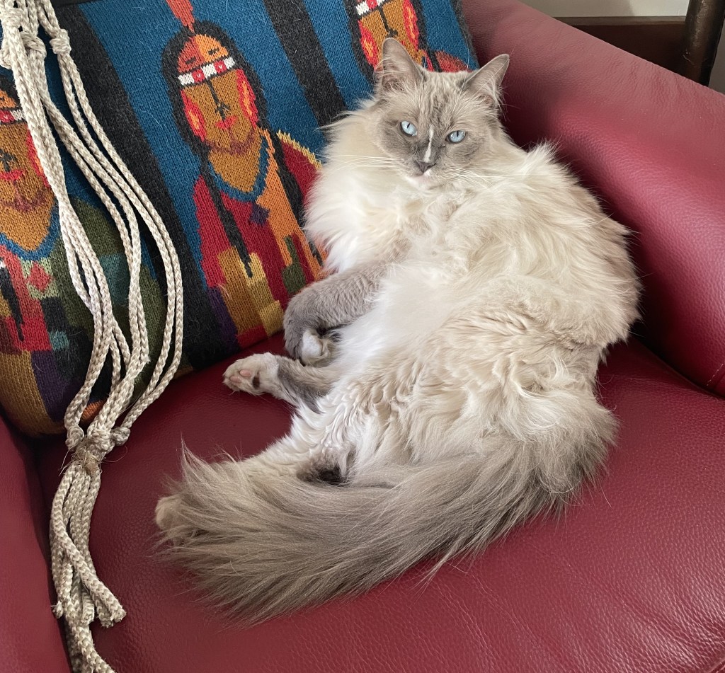 Once he got over losing Sam, Q.D. recognized which member of the household was more likely to feed him, rub his tummy and comb out his Ragdoll fur, and he attached himself to me.