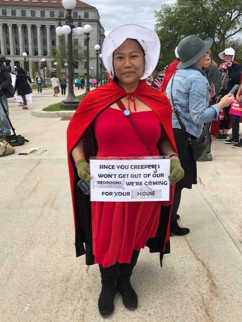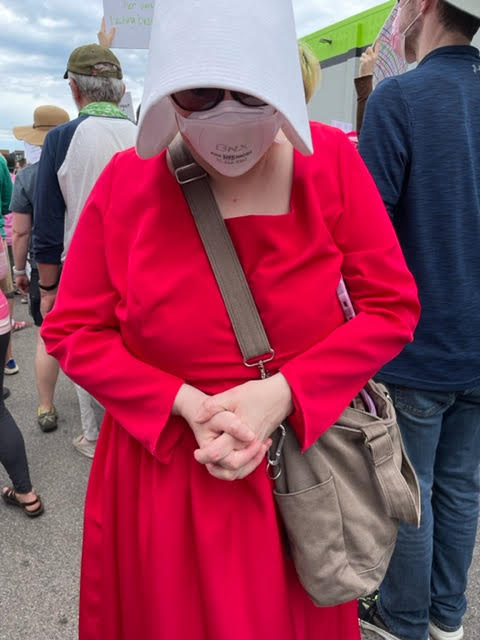 The first time I saw a Handmaid’s Tale outfit at a pro-choice rally was at the Minnesota State Capitol in spring 2019. “Since you creeps won’t get out of our bedrooms, we’re coming for your House,” the woman’s sign read. I didn’t know then that the costume would become contentious, that women of color whose earlier family members had no choices, who had no agency over their bodies, would see it as another symbol of white, clueless privilege. Still, at that time and place, it was powerful for me.