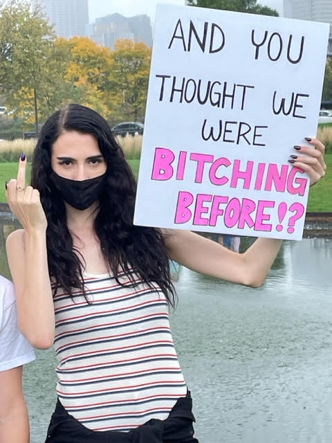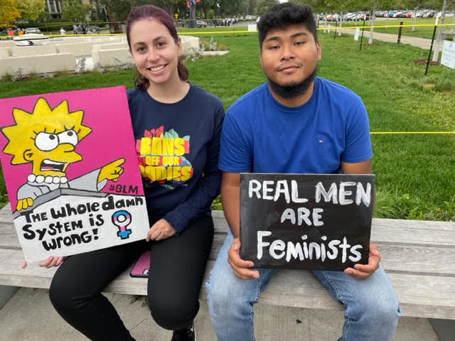 At the National Day of Action, dubbed the Women’s March, in Minneapolis on October 2, 2021, I volunteered to get people on the mailing list for UnRestrict Minnesota, a coalition of groups focused on reproductive rights, racial equity and gender equality. Then I started taking photos of T-shirts and signs. Some were provocative (“If my uterus could fire bullets, you wouldn’t regulate it”), others straightforward (“Patriarchy hurts everyone” and “Racist people suck”).